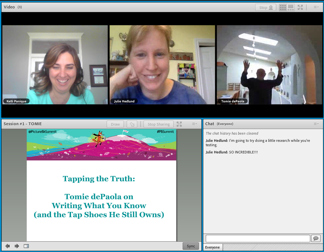 Yes, please! When Julie and I did our tech check with the late beloved Tomie DePaolo, he offered to take us on tour of his studio. First off, Tomie was just a big beautiful light in this world. Even through a video screen, his smile lit up the room and his eyes twinkled in that special way of someone who is truly happy to see you. So, he loaded up his laptop and took us round his studio and gave us the grand tour. He laughed and giggled as he showed us around. It was such a special moment and Julie and I could not believe our luck! I still have the email he wrote me after the Summit signed with x’s and o’s. He was a gem of a human being.
